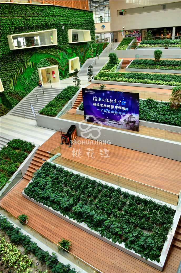 濱海新區(qū)文化中心項目中的市民活動中心區(qū)域采用桃花江戶外防腐竹地板。竹材深厚的文化底蘊與其優(yōu)異自然環(huán)保的性能一直是文化場館建設(shè)材料。